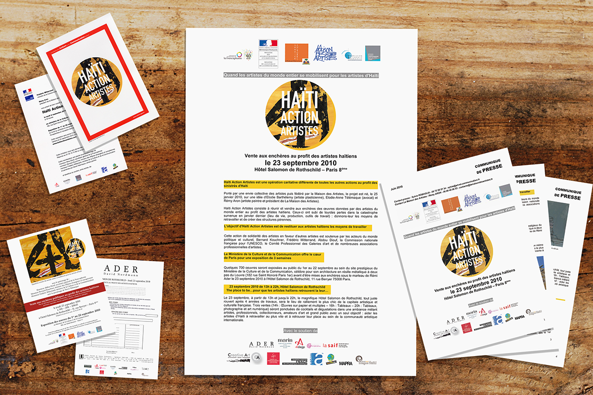 Vente aux enchères de 669 œuvres pour récolter des fonds et développer des projets d’aide au profit des artistes Haïtiens via l’association Haïti Action Artistes, suite à un séisme.